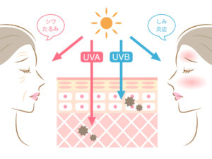 UVBは、皮膚の表面に作用して赤みや水ぶくれを起こすものです。