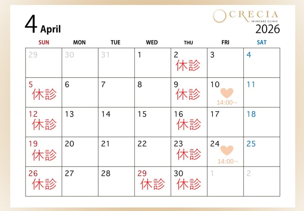 院長不在時につきましては、表示されているお時間に限り、お化粧品のご購入および